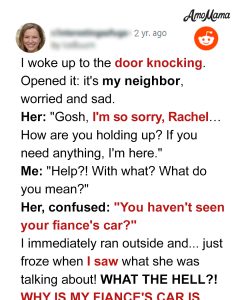 She glanced behind her toward the street. “I just thought maybe you knew. I mean, your fiancé’s car… there’s a message on it. And it’s not exactly cheerful.”